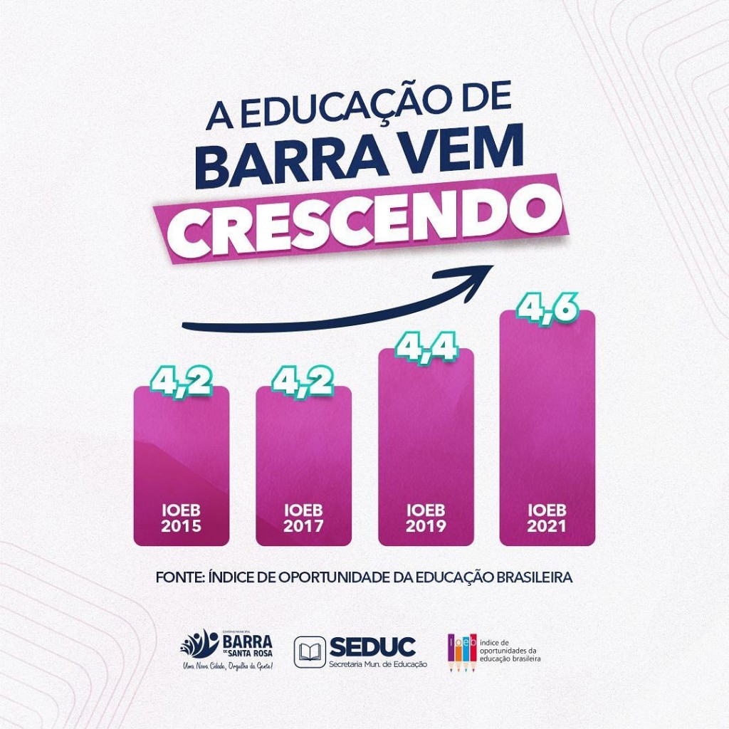 Foi divulgado pelo site ioeb.org.br o IOEB 2021, e continuamos elevando o índice que retrata as oportunidades educacionais dos municípios, ou seja, a qualidade da oferta educacional para os alunos que frequentam as redes pública e privada.
