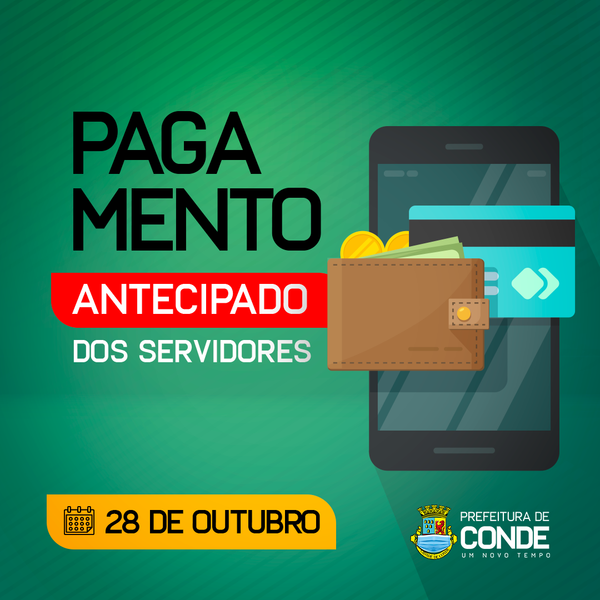 Os funcionários da Prefeitura de Conde têm motivos de sobra para comemorar nesta quinta-feira (28). A data marcada pelo ‘Dia do Servidor Público’ é festejada com os salários nas contas dos servidores, uma vez que a gestão municipal antecipou o pagamento referente ao mês de outubro.